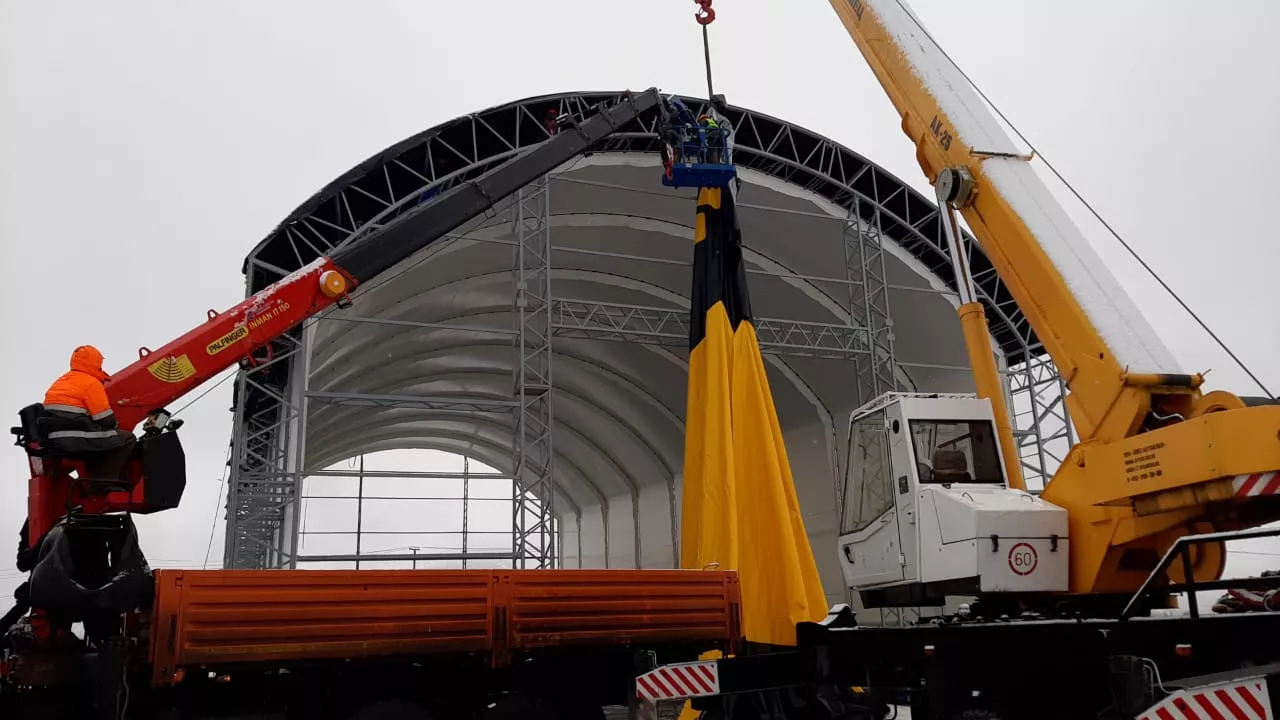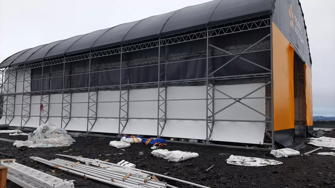 В Магаданской области идёт монтаж тентового ангара для крупнейшей золоторудной компании.