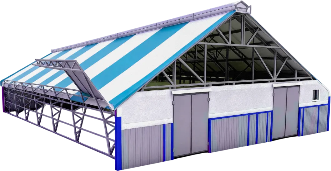Утепленные постройки для защиты от теплопотерь обтягиваются двумя тентами, между которыми оставляют воздушную прослойку либо закладывают рулонный утеплитель тепофол. Для возведения стен строения в теплом исполнении могут применяться сэндвич-панели.